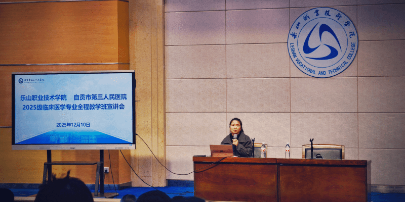 为帮助学生明确专业发展路径,培养高素质临床医学人才,医学学院邀请自贡市第三人民医院医教科副科长龚晓玲老师到校,特举办本次宣讲会,系统介绍了全程班的特色培养模式。该模式强调“理论与临床实践深度融合”:学生在医院进行理论学习,周末进入临床见习,实现“学用一体、无缝衔接”。全程班还为每位学生配备专业带教老师,提供一对一指导,确保个性化培养。