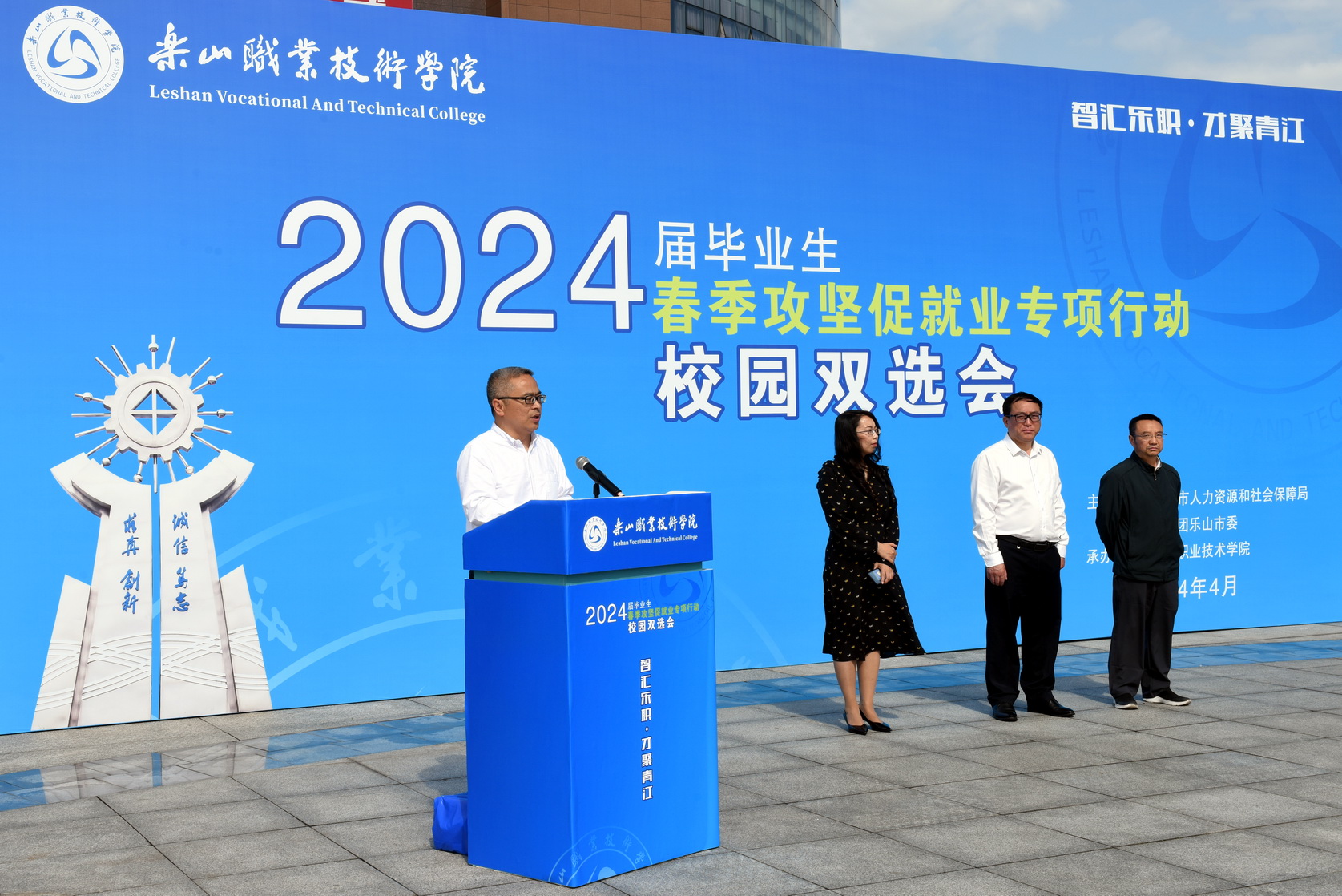 4月19日上午,由乐山市人力资源和社会保障局、共青团乐山市委主办,8797威尼斯老品牌承办的“2024届毕业生春季促就业攻坚行动启动仪式暨大型校园双选会”在8797威尼斯老品牌明德广场举行。学校领导成定彬、陈元进、张学河、周芹出席启动仪式,相关部门负责人、二级学院相关负责人、招聘企业代表和2024届毕业生代表参加了启动仪式。