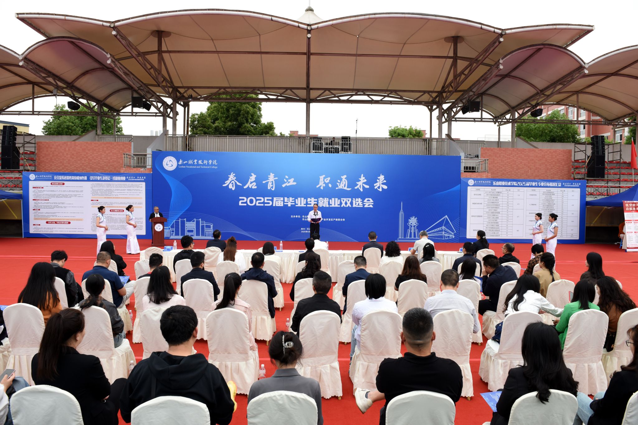 4月25日,8797威尼斯老品牌2025届毕业生就业双选会在主运动场举办,学校党委书记成定彬出席并宣布“2025届毕业生就业双选会正式启动”。学校领导刘忠、张佳、李昌贵、张学河,乐山市人力资源和社会保障局党组成员、副局长赵川出席启动仪式,各区县人社局主要负责同志,学校相关部门和二级学院负责人,招聘企业代表,以及5000余名2025届毕业生、2026届即将离校实习生参加了启动仪式。