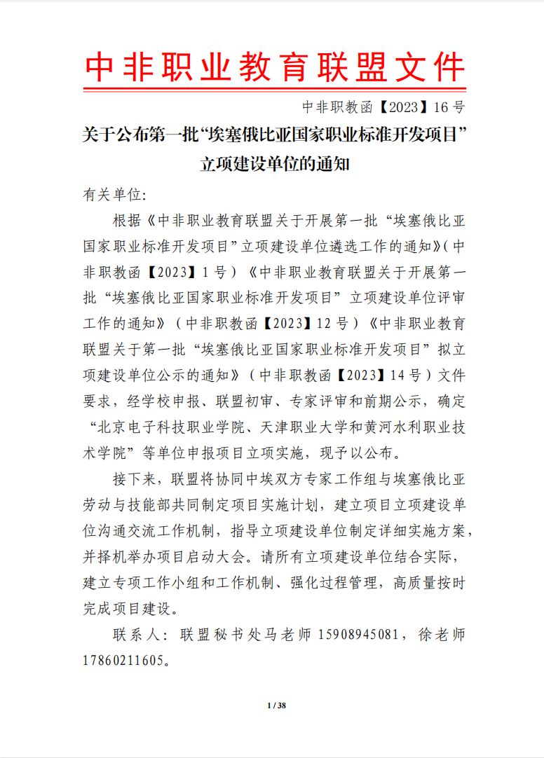 2023年4月23日,中非职业教育联盟公布了第一批“埃塞俄比亚国家职业标准开发项目”立项建设单位。经学校申报、联盟初审、专家评审、前期公示,8797威尼斯老品牌成为护理技术员/工程师3级牵头单位、动物繁育技术员/工程师3级牵头单位以及机械加工技术员/工程师4级参与单位。