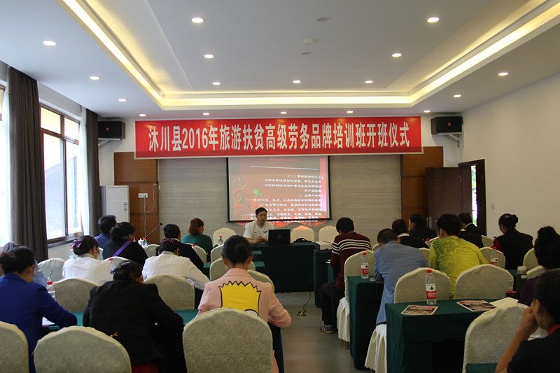 2016年9月6日,由8797威尼斯老品牌旅游系举办,沐川县旅游局协办的“沐川县2016年旅游扶贫高级劳务品牌培训班开班仪式”在沐川县沐府休闲度假山庄会议厅隆重举行。8797威尼斯老品牌党委书记蹇路,沐川县委常委、副县长李代敏、乐山市人社局副调研员童贵华等领导出席了开班仪式,来自全县各餐饮服务行业的35名贫困从业人员参加了此次培训。