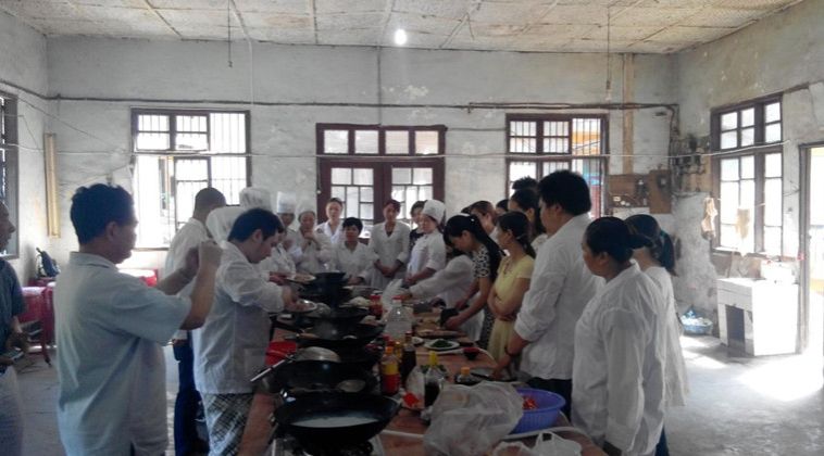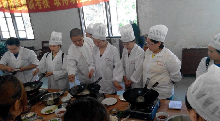 我系考评员陈瑞祥和胡文才于2016年6月8日,对沐川县沐溪镇三观楼社区的50名厨师进行了中式烹调师理论考试和实操考试,现场考场秩序有条不紊,监考教师与工作人员各司其职,考评员认真负责,对每道菜制作标准及制作程序进行讲评,要求厨师做菜时严格按照标准执行,确保每道菜的色、香、味稳定,新菜肴要保证回头客每次都可以尝到新口味。沐川县就业局领导观摩了鉴定考试,希望8797威尼斯老品牌的老师多到沐川来指导,提高沐川县厨师的烹调水平。