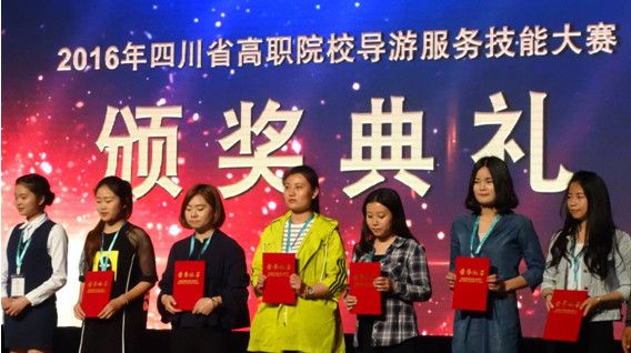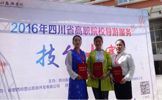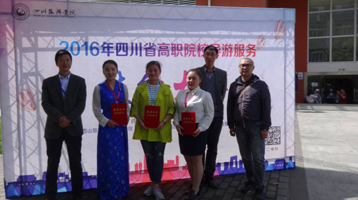 4月16-17日,由四川省教育厅主办的2016年四川省高职院校导游服务技能大赛在四川旅游学院举行。经过不足两周的精心组织和认真准备,杨帅、王峻峰、鲜梦玲老师利用课余和休息时间对学生进行悉心指导,旅游系旅游、导游专业学生伍黄琴、陈佳、杨美曼,经过导游基础知识测试、自选景点讲解、带团应急案例分析和才艺展示三个环节的层层淘汰赛,分别获得了普通话导游服务组与英语导游服务组三等奖。我院英语导游服务项目上也取得了突破,我院也成为四川省32所高职院校唯一一所参赛选手全部获奖的参赛团队。