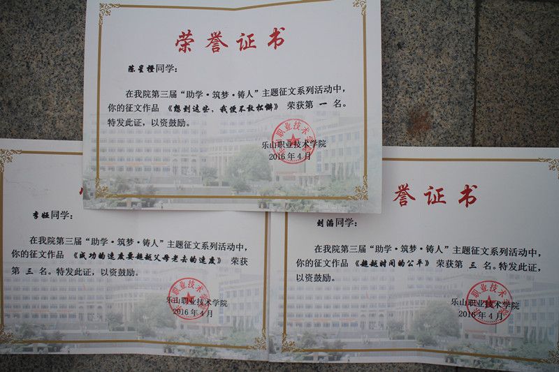 同学们的征文和视频都以自己的真实经历,表达出国家助学政策点亮他们的梦想照亮前行的路。最终,我系视频作品《不忘初心》获得学院一等奖。征文活动中由我系动漫15-1班陈星橙以《想到这些,我便不敢松懈》为题目获得学院一等奖,动漫15-1班李娅和刘涛获得佳绩,并被学院推荐到省上参加比赛。在此希望我系同学以后能够相互传递正能量,增强社会责任,向更高的目标发展,成为社会的栋梁之才。