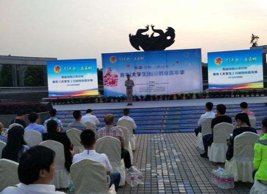 2016年5月4日,乐山市青年(大学生)创新创业嘉年华活动在乐山广场隆重举行,活动由市团委、市人社局、市科技局联合举办。市委副书记、市长张彤到场巡展,市委常委、常务副市长田文,市委常委、市委秘书长宁坚出席活动。