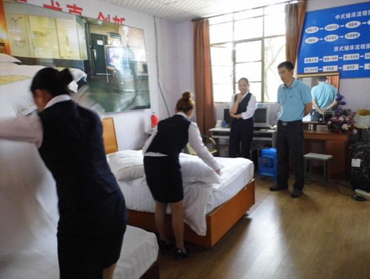 年学生技能比赛,比赛项目范围中餐摆台、中式铺床。比赛前,专业主任们进入班级宣传动员,扩大了比赛的知名度和参与度。酒店