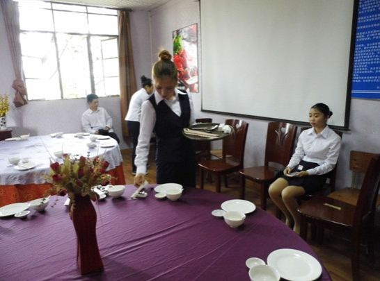 三个班的同学积极报名,刻苦准备,教师积极参与,专业主任精心组织,通过初赛和半决赛,评选参加决赛的选手中餐摆台