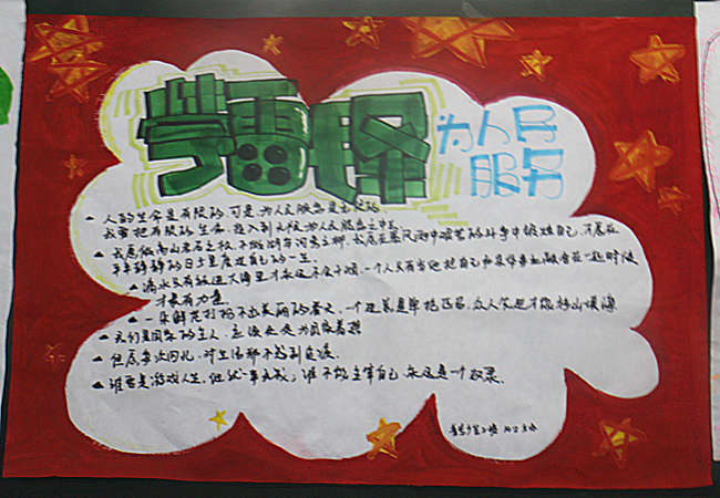 点,在各班展开了以“学雷锋”为主题的黑板报和手抄报评比活动。