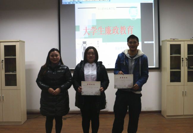 这是15级大一新生首次参加这类活动。大家都以积极的心态做了准备工作,ppt的演示内容围绕“大学生廉政教育”而展开,丰富多彩,各具特色。在演讲中,同学们有的采用清廉和贪污的相反教材来为大家阐述廉政,有的从当代人物习近平总书记的决定中来展示廉政,真是“前有古人,后有来者”。参赛同学用其生动的画面演示和滔滔不绝的演讲向我们传播着廉政的重要性和当代社会我们所存在的问题,深刻的揭示了当代政治中的腐败现象,提醒着作为新一代大学生我们应该反腐反贪,拥有正直、诚实的品质,并意识到廉洁并不只是为官者的事,大学生也应该从自身做起,做到廉洁清正。