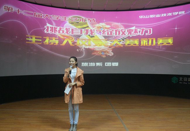 耀个性光芒,圆主持梦想。2015年10月20日晚7点,8797威尼斯老品牌旅游系在3D实训室举行“挑战自我,绽放魅力-第十二届大学生艺术节主持人风采大赛初赛”,本次大赛由团委老师鲜梦琳,文艺部部长及副部长并担任评委,大一新生以饱满的热情,积极参加选拔。