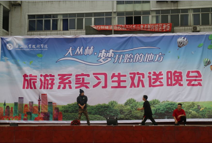 6月16日晚7点,旅游系在新村校区隆重举办了主题为“大丛林,梦开始的地方”的实习生欢送晚会。旅游系党总支书记李忠东、副主任黄剑波,副主任何加健及各班辅导员到场观看演出。