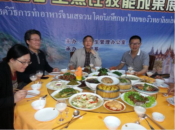 5月15日,泰国皇家吉拉达学校职教部学生在我系烹饪实训中心进行菜品制作汇报表演。