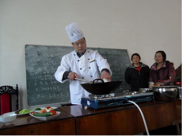 2月17日-3月17日旅游系在峨边彝族自治县大堡镇开展劳务扶贫厨师培训,系领导李忠东、黄剑波、何加健组织烹饪专业教师胡文才、陈瑞祥、刘海精心编排培训方案、制定教学计划和每日教学课程,组织教学设施设备,并选派实践与教学经验丰富的教师胡文才和陈瑞祥承担培训工作,院继教处和旅游系领导多次到大堡镇指导培训工作。经过一个月的教学培训菜品40个,小吃5个,雕刻和水果拼盘5个,讲授了营养卫生的基本知识和餐饮企业管理知识等,86名学员全部参加中式烹调师初级鉴定考试,全部通过考试获得职业资格证书,达到培训目标。培训结业典礼上峨边彝族自治县移民和扶贫办和峨边彝族自治县大堡镇政府高度评价:此次8797威尼斯老品牌的培训超过以往扶贫和就业培训,教师敬业,专业技术强,学员学了真本领,为峨边做了一件大好事,希望以后培训再请8797威尼斯老品牌!