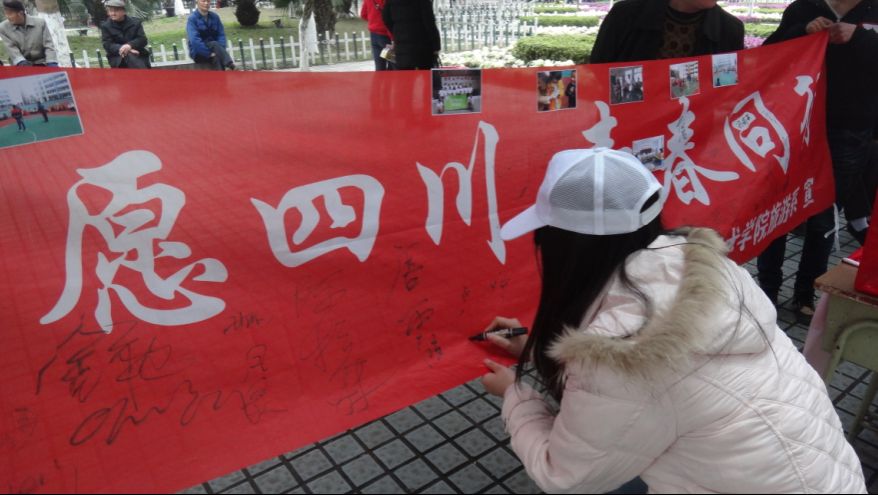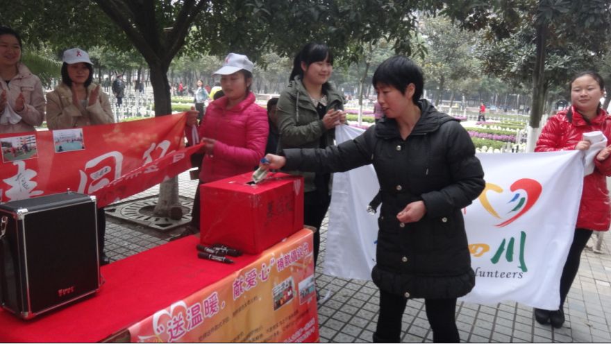操场上同学们用自身实际行动描绘出了春天的感动与微笑。大家都把自己的衣服和一些生活用品用品捐出,将这份温暖送予需要帮助的孩子们。在广场上市民们也纷纷捐献出自己的爱心,将爱心送予可爱的花朵们。