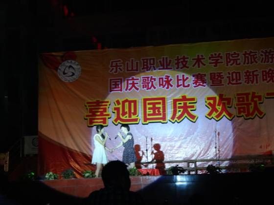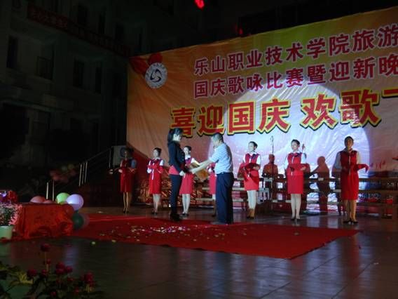 学工部部长张学河、副部长魏凡、旅游系李忠东书记、黄剑波副主任及何加健副主任到场担任评委。我系各班积极参与,《四渡赤水》、《爱我中华》、《我的中国心》等歌曲,表现出了同学们对祖国的热爱,也为祖国的生日献上最美的赞歌!