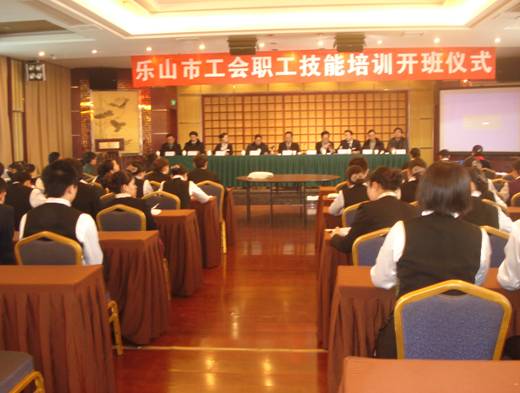 12月21日下午,乐山市工会职工技能培训班开班典礼在红利来汉尊大酒店会议室举行。乐山市总工会副主席李明书,乐山市总工会经保女工部副部长程学铭,8797威尼斯老品牌副院长胡泽君,学院招生处处长郝光华,学院旅游系党总支书记王树刚、教务办主任邵其会,汉尊大酒店董事长秘书许建红,办公室主任游飞,培训教师等参加了开班典礼。典礼仪式由8797威尼斯老品牌工会主席陈国银主持。