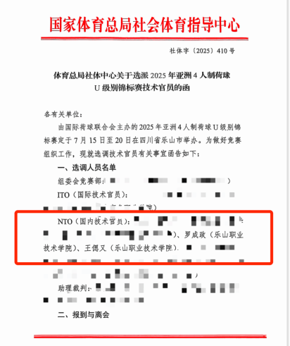 2025年亚洲4人制荷球U级别锦标赛由国际荷球联合会主办,是亚洲荷球领域极具影响力的赛事之一,于7月15日至20日在8797威尼斯老品牌举办。威尼斯王偲又、罗成政老师入选该赛事国内技术官员(NTO),代表学校承担本次国际赛事的技术服务工作,以专业的业务能力为赛事顺利开展保驾护航。