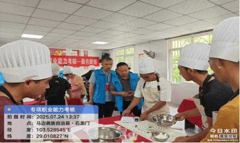 文化旅游学院教师刘海应乐山市人力资源服务协会之邀,于2025年7月24日下午13点30分在马边彝族自治县石龙门村村委会,主持乐山专项职业能力考核——马边临时考点烘焙专项职业能力考评。
