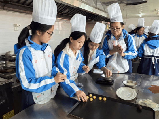 上午的研学活动以月饼制作和乐山豆腐脑体验两个模块。在月饼制作现场,研学导师讲解了食品安全与健康及注意事项,介绍了月饼的历史、食材搭配及揉面、包馅、压模等关键技法。同学们分组协作,揉制面团,将香甜的馅料包裹其中,再用模具压出精致的花纹,一个个月饼在手中逐渐成型。在豆腐脑体验区,导师结合乐山豆腐脑的地域特色,介绍了其“鲜、香、麻、辣”的风味特点和配料制作、熬制高汤等传统工艺。同学们在导师指导下,亲手添加小酥肉、花生等配料,品尝着自己参与制作的地方美食,对乐山饮食文化有了更直观的感受。