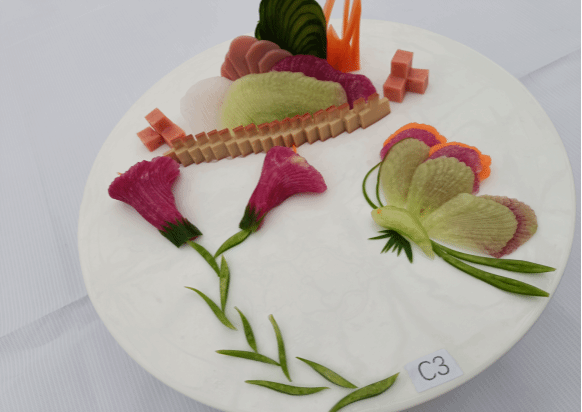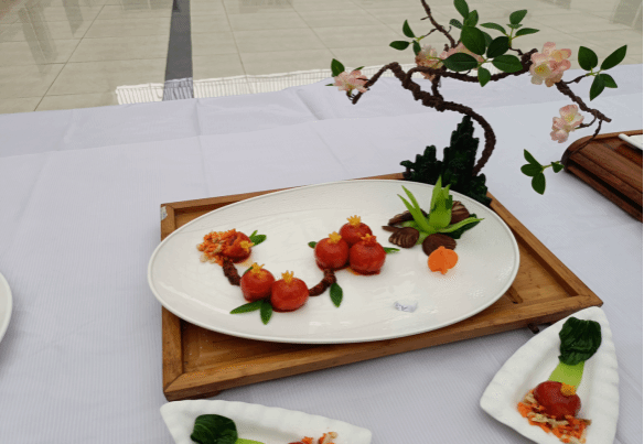 本次比赛汇聚了乐山慧德综合高中、乐山第一职业高中、乐山知行旅游综合高中三所学校的15名优秀选手,围绕中职烹饪理论笔试、热菜制作、面点制作、食雕与拼盘制作四大核心项目展开激烈角逐。热菜赛场,选手们火候精准、调味精妙,一道道融合地方风味与创意表达的菜品香气四溢;面点赛场,和面、擀皮、塑形一气呵成,象形酥点、月牙饺等作品兼具颜值与口感;食雕与拼盘项目中,选手们以刀为笔、以食为墨,将食材化为栩栩如生的艺术造型,或展现山水意境,或传递文化内涵,充分彰显了中职学子扎实的专业功底与丰富的想象力。