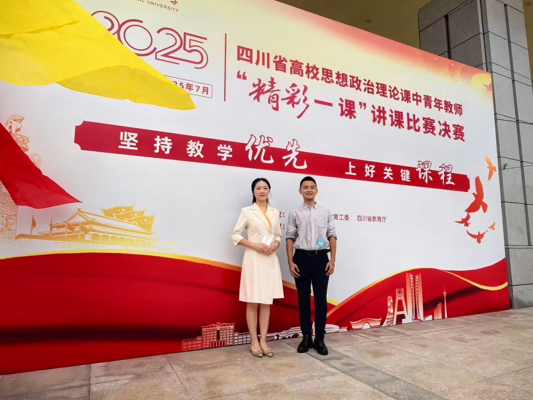 四川省高校思想政治理论课中青年教师“精彩一课”讲课比赛是由省委教育工委、四川省教育厅主办,每两年举行一次。比赛分为初赛、复赛和决赛三个阶段,全省133所高校共550名教师进入复赛,最终182名教师进入全省决赛。决赛采用教师现场讲授、学生评委和专家评委现场打分的方式进行,要求高、难度大,两位教师在决赛中充分展现了新时代高校思想政治理论课教师风采,表现优异,获得好评。
