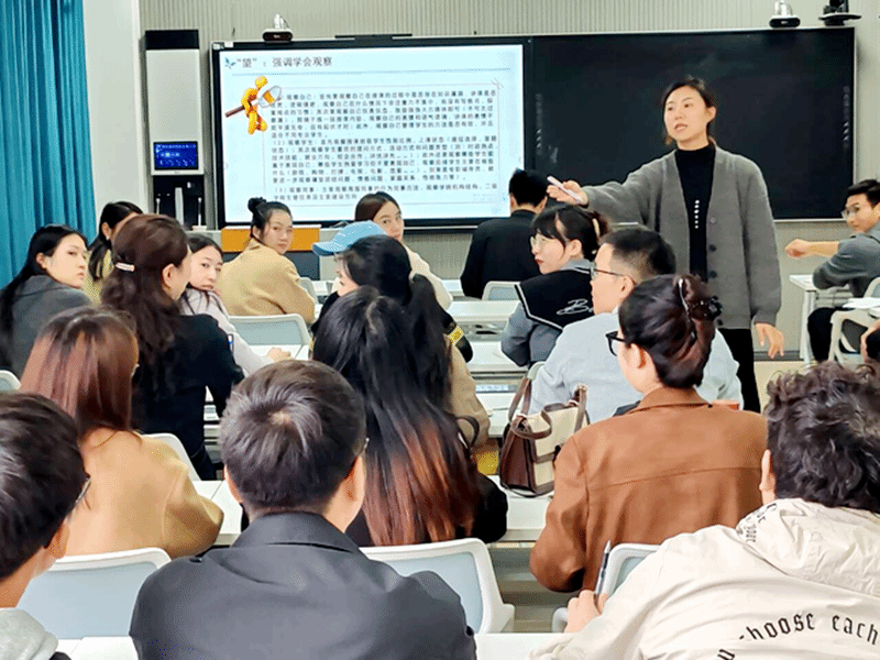 2024年11月14日,中国妇女第十三次全国代表大会代表、全国“最美家庭”获得者、马克思主义学院思政课教师姚佳秀在教师发展中心为新进教师举办了一场主题为“做一名‘望、闻、问、切’的好老师”的培训活动。