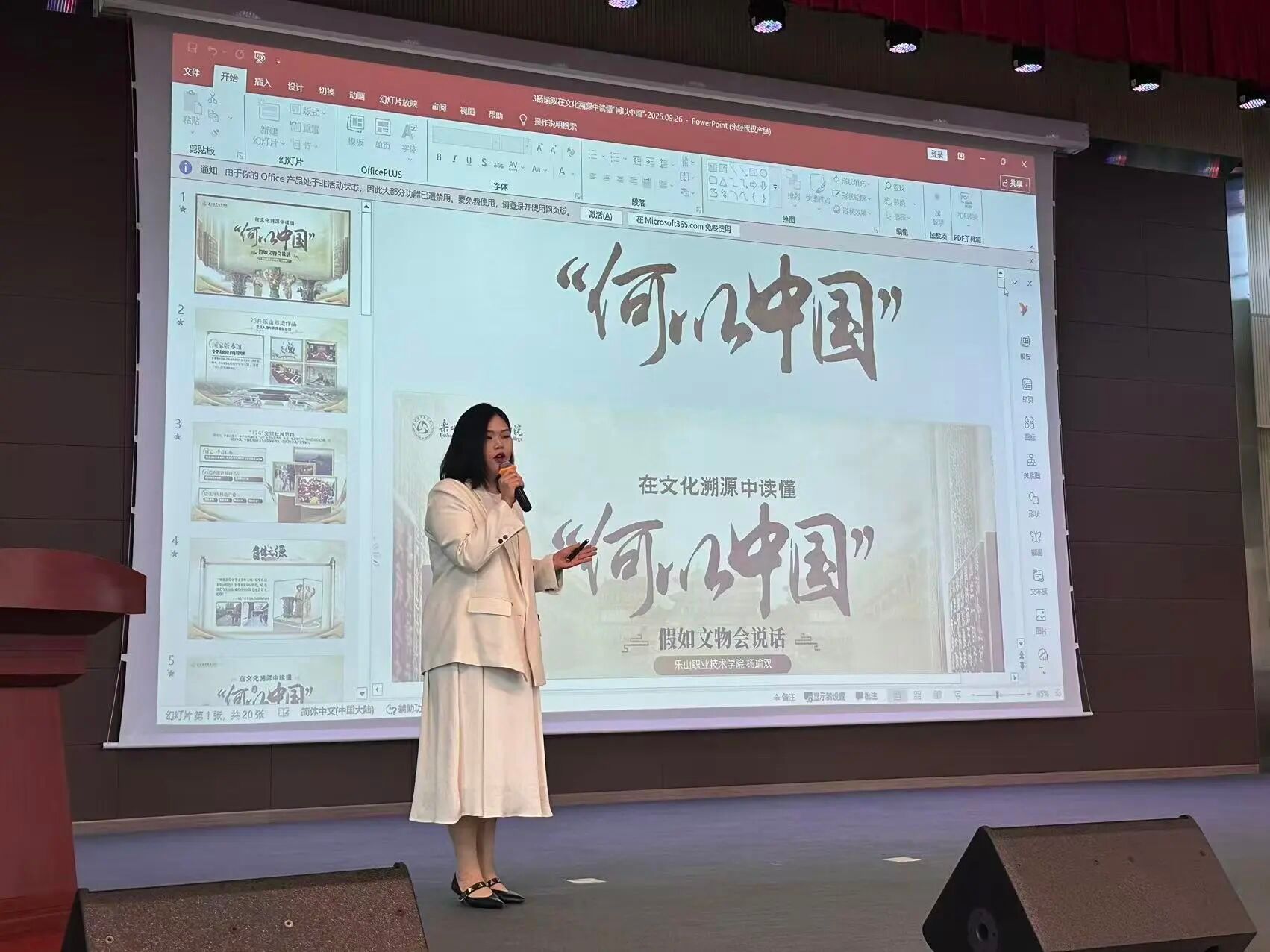 杨瑜双以《在文化溯源中读懂“何以中国”——假如文物会说话》为题,紧贴省委、乐山市委全会精神,以文化为题,创新采用文物拟人化手法,在历史与现实的对话中解码中华文化基因,解读乐山市“124”文旅发展思路的广阔未来。