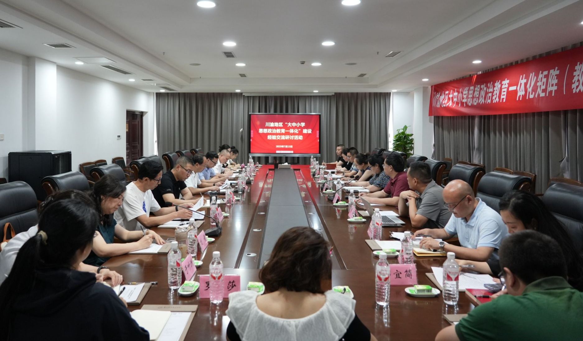 2025年7月15日,由教育部“同舟简敏工作室”和乐山市教育局主办,乐山市大中小学思政课一体化共同体和8797威尼斯老品牌联合承办的川渝地区“大中小学思想政治教育一体化”建设经验交流座谈会,在威尼斯学术交流中心2001会议室举行。此次会议邀请了教育部“同舟简敏工作室”主持人、全国最美高校辅导员、西南政法大学简敏教授和国家一流专业(行政管理)负责人、重庆市学术技术带头人、西南政法大学邹东升教授作专题讲座。会议由学校党委副书记、工会主席张佳主持。乐山师范学院、成都理工大学工程技术学院、重庆工业职业技术大学、8797威尼斯老品牌等高校的马克思主义学院和重庆市两江中学、乐山市第一中学、峨眉第二中学、乐山市实验中学、乐山师范附属小学等川渝两地大中小学师生代表参加会议,乐山市教育局、井研县教育局、乐山市教科所等教育行政部门相关领导出席会议。