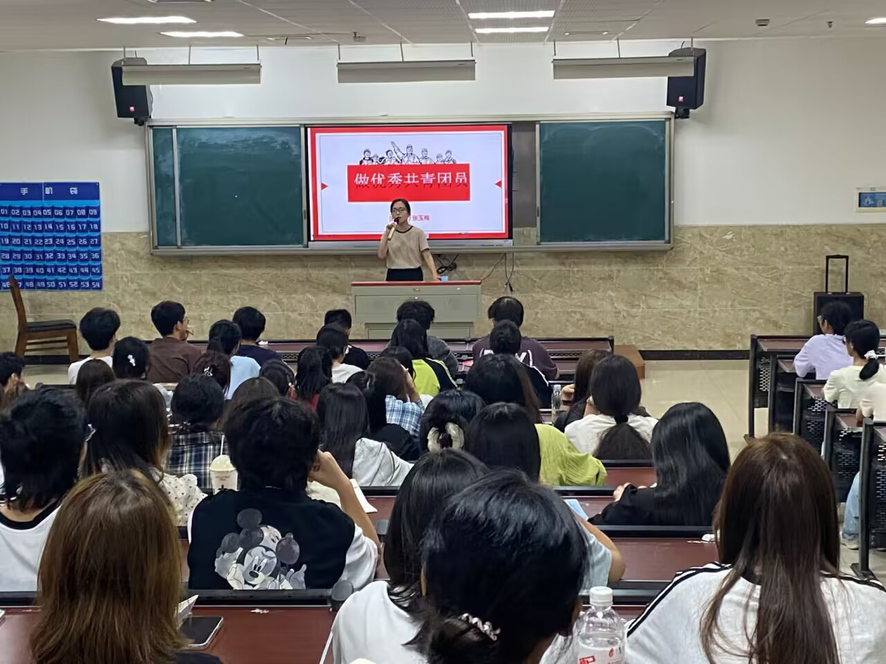 2024年9月27日14:00第三期“青马工程”暨团校培训班举行开班仪式,宋建群老师对此次团校学习进行动员讲话,她希望学员们做到思想上高度重视,行动上主动作为,实践中奋勇担当。新学员代表奉艺倩在发言中表示每一位同学都将坚定信念,勤奋学习,勇于实践,努力成为新时代的青年马克思主义者。