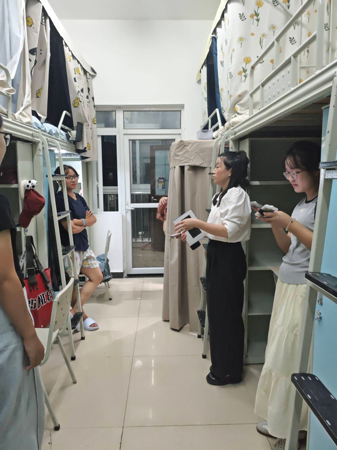检查团队深入各个楼层,对宿舍的卫生状况、整洁度、用电安全、违禁物品等情况进行了全面检查。对于优秀寝室,老师们给予了充分的肯定与鼓励;发现安全隐患问题,及时向同学们指出,并提出整改建议。老师们还就新学期同学们的生活学习情况进行了详细交流。