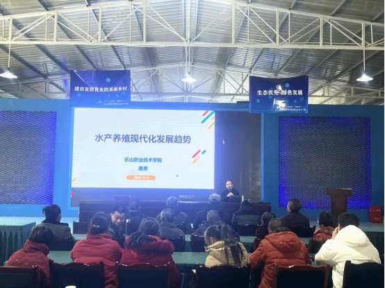 2024年12月16日,现代农业学院副院长唐勇博士,应乐山市市中区农业农村局水产站邀请,在乐山市中区水产现代农业园区渔文化中心,对来自白马镇的30多名水产养殖业主开展专业技术培训。