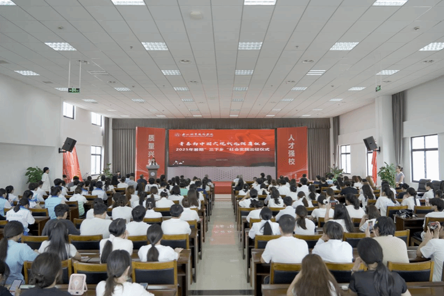 仪式在庄严的国歌声中拉开序幕。校团委首先介绍了2025年暑期社会实践活动的相关情况,并宣读了暑期社会实践活动纪律和安全工作要求。
