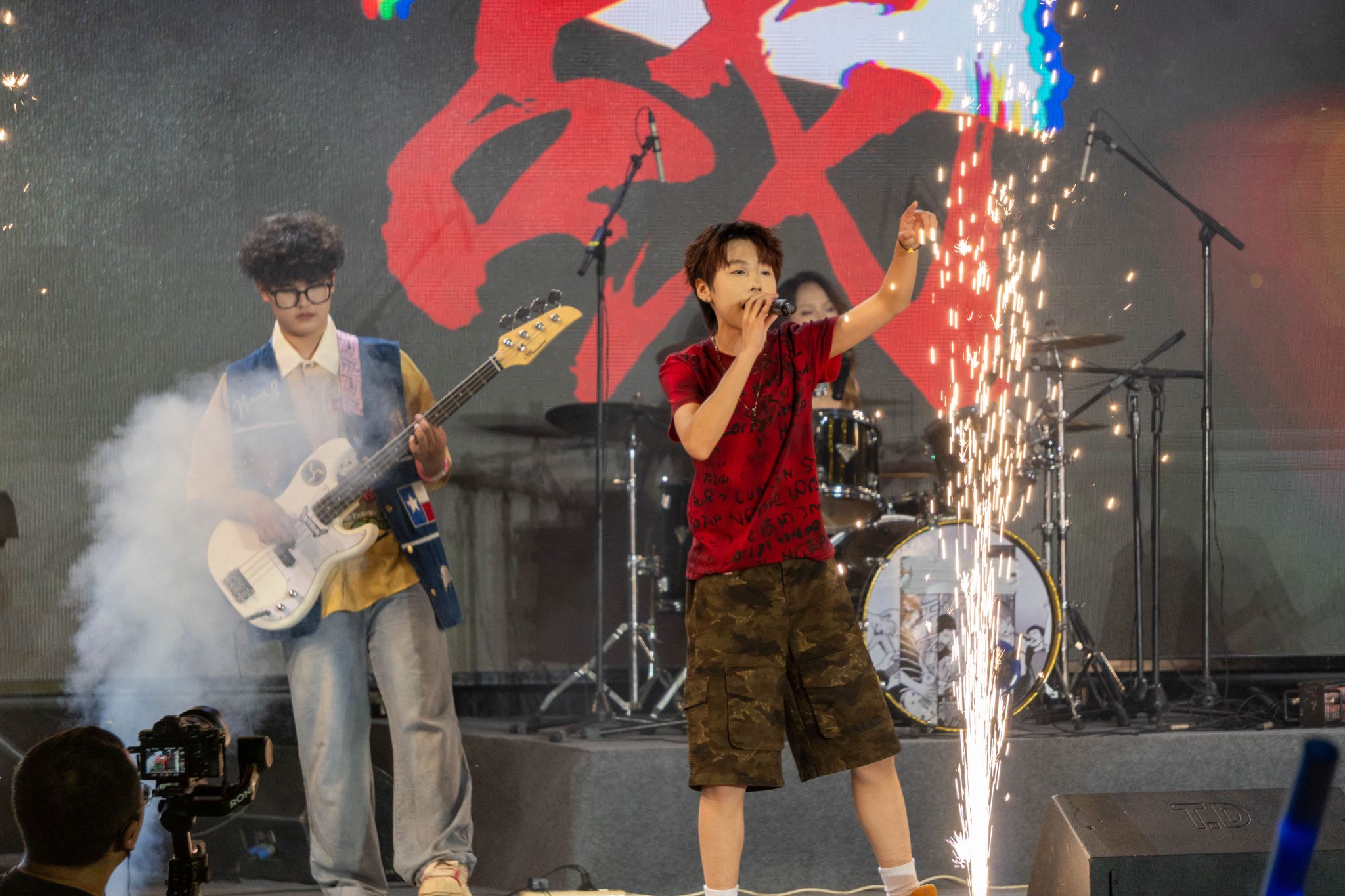 音乐节上,由在校学生组成的乐队成为舞台焦点。以曲目《鲜花》开场,吉他与鼓点交织出夏日的蓬勃生机;《想去海边》用清亮嗓音勾勒出青春的自由与向往;《爱的飞行日记》,唱出对校园生活的眷恋。《月牙湾》大胆创新,将传统民乐二胡融入其中,尤为亮眼,李恩泽独挑大梁的《逆战》以激昂旋律点燃全场,乐队默契配合,将摇滚精神演绎得淋漓尽致。每一支乐队从曲目编排到现场演绎,均展现出扎实的音乐功底与独特的艺术风格,成为音乐节最动人的风景线。