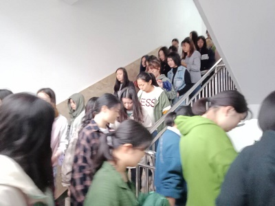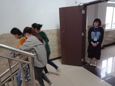 为确保此次演练安全有序的进行,公寓管理中心提前对管理人员与公寓自律委员会学生干部进行安排部署,确定每人的位置与职责。当警报声拉响,公寓学生在执勤人员的引导下迅速、有序的按照路线疏散。在演练中,学生高度重视,快速有序安全的疏散出公寓。