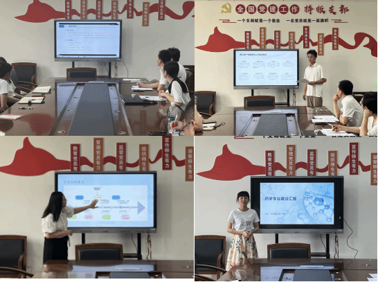 比赛过程中,中药学专业负责人兰英、药物制剂技术专业负责人孙川、药品经营与管理专业负责人袁明焱、药学专业负责人岑菲菲依次登台,围绕各自专业的建设背景、人才培养目标、行业需求、人才培养模式、师资队伍等内容进行了全方位汇报。4位负责人结合专业特色,分享了在专业建设过程中的创新举措与成效,并提出目前存在的问题和下一步建设举措。学院班子成员及各教研室主任作为评委,从专业定位、课程体系、教学改革等多个维度对汇报内容进行了现场评分。