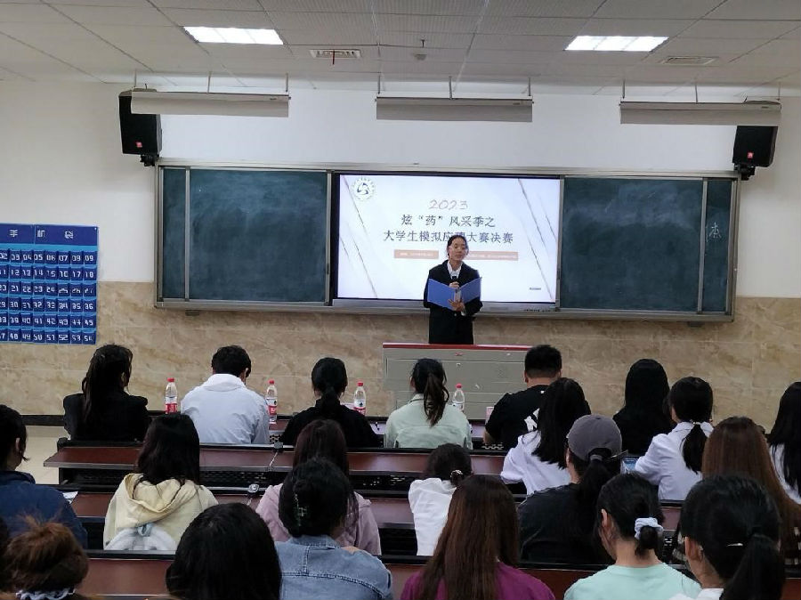 扬就业之帆,启梦想之旅。为引导同学们树立正确的成才观、就业观,帮助同学们科学合理的规划大学生活,提高就业技能与实践能力,促进学生自主全面发展,以应对日益激烈的就业竞争,生物医药学院、现代农业学院于2023年5月10日13:30-15:30在教学楼2c101举行炫“药”风采季之大学生模拟应聘大赛,由乐山市人民医院药学部副主任药师朱璀钇、乐山市旭旺兽药有限公司总经理徐航、生物医药学院党总支书记徐娇、现代农业学院主持工作副书记鲜凌瑾、生物医药学院实习就业指导老师孙川担任评委,共有生物医药学院与现代农业学院200余名同学参加。