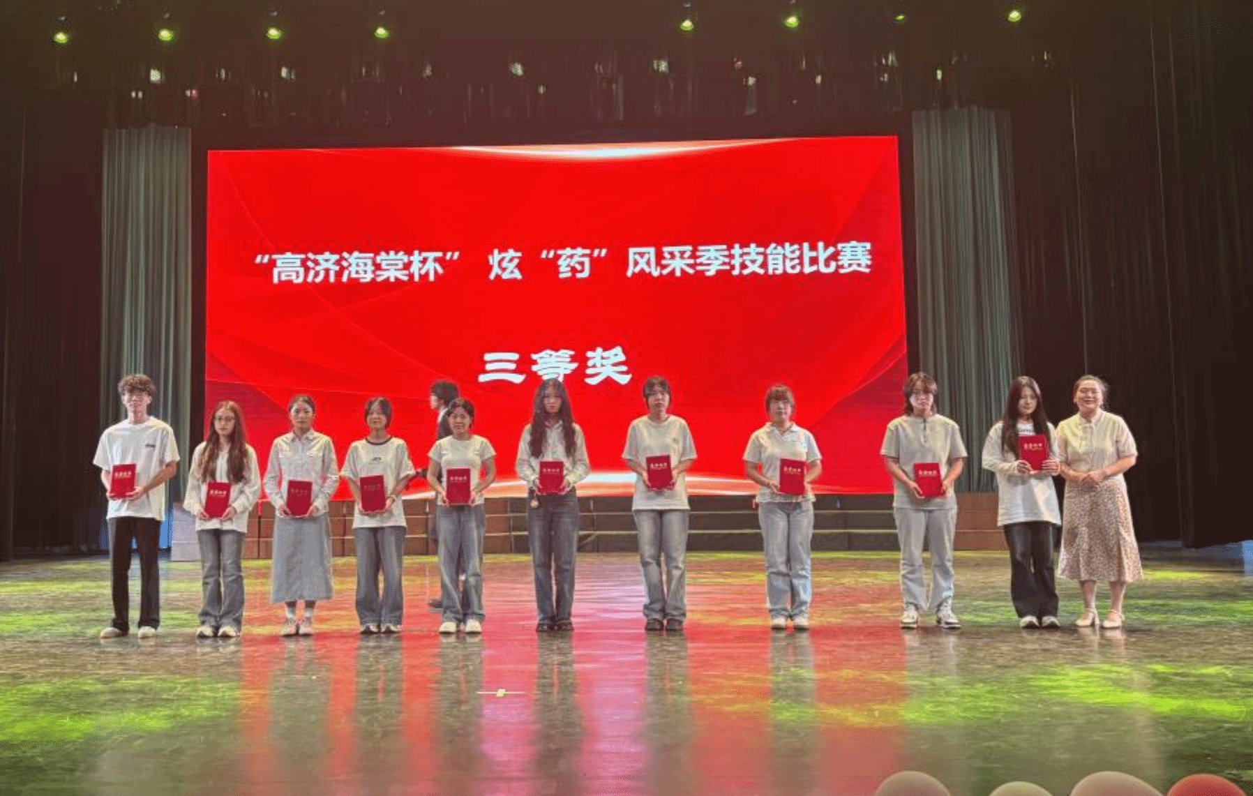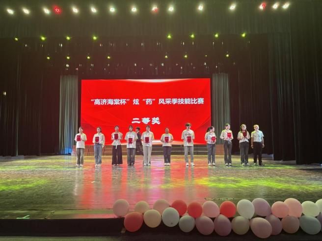 在颁奖环节,生物医药学院党总支书记徐娇、副院长(主持工作)李喜安、党总支副书记靳婕、副院长朱链链等领导走上舞台,为本届“高济海棠杯”炫“药”风采季技能比赛的获奖者以及优秀学生干部代表们颁发证书。这不仅是对获奖者卓越能力的肯定,更是对同学们一直以来努力学习、积极进取的高度认可,激励着同学们在未来的人生道路上继续追求卓越、勇攀高峰。
