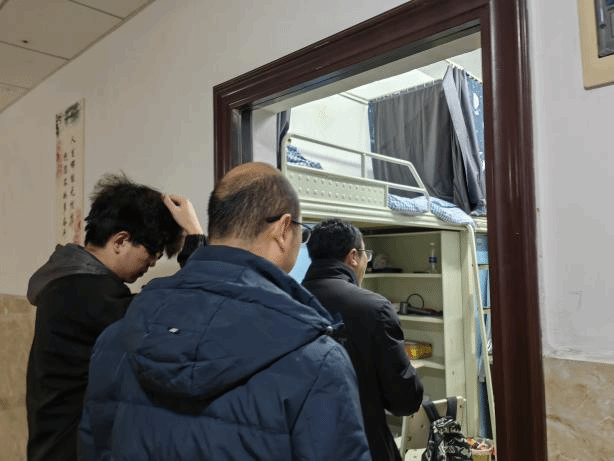 检查组首先对两栋宿舍的归寝情况进行核实。针对女生3A栋,靳婕书记带领辅导员卢妮娜、卢雪、李静华、蒋晓娟逐间寝室核对人数,确认全体学生均已按时返校,无晚归、未归现象。男生2A栋则由学管办干事张俊老师与值周教师韩广田、辅导员谢雨芩联合检查,同样未发现异常情况。检查过程中,老师们还亲切询问学生生活需求,提醒冬季注意防寒保暖,体现人文关怀。
