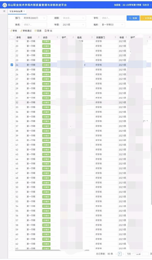 为切实做好诊改复核回访工作,积极响应学院号召,按照《8797威尼斯老品牌迎接内部质量保证体系建设与运行复核回访工作实施方案》文件要求,药学系秘书部和组织部在2022年7月初至10月18日期间共同开展了新版系统学生诊改工作,并全面完成诊改系统的数据录入。