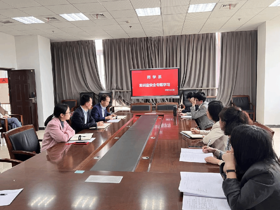 为加强药学系全体教职工的校内实训安全意识,提高药学系教职工的安全器材操作技能,2022年4月18日药学系举办校内实训安全专题培训,全体教职工成员,含全部外聘老师,参加了本次培训会。