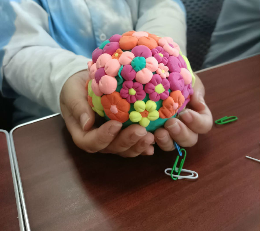 活动开始前,由主持人介绍了活动规则及注意事项,各小组有五分钟思考时间,四十分钟的动手操作时间。活动开始后,同学们积极应对,利用塑料球、轻粘土、回形针等创造出了很多新奇的小地球手工作品,工作人员为每一组的成果拍照留念。活动结束后,大家有序离场,活动圆满完成。