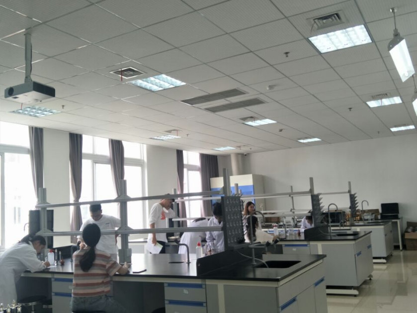 本次初赛的内容是溶液的稀释,其目的是以大赛的形式考查化学实验基本操作的熟练程度。参赛人员按次序每次一组,一组四人进场进行比赛,共六组人员。活动期间,各评委老师认真评判,做好评分记录,活动现场井井有条,保证比赛公平公正。